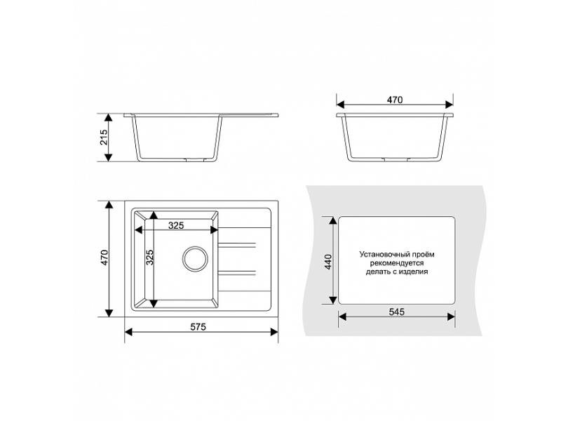 - Глубина 215 мм