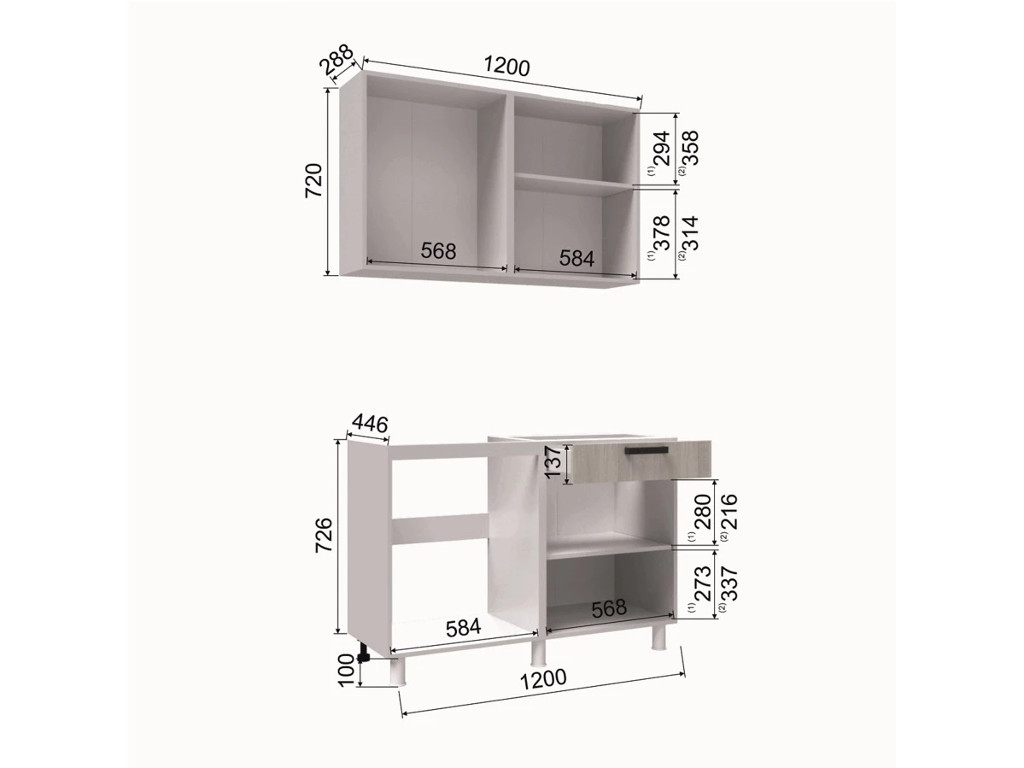 - Кухня Аликанте 1200 МДФ Белый снег/пудра без столешницы