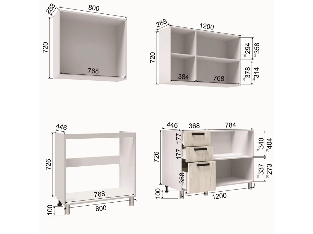 - Высота верхних шкафов, мм 720