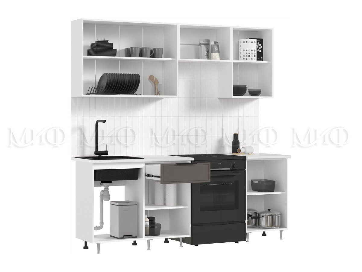 - Кухня Николь 2100 мм Холст вулканический
