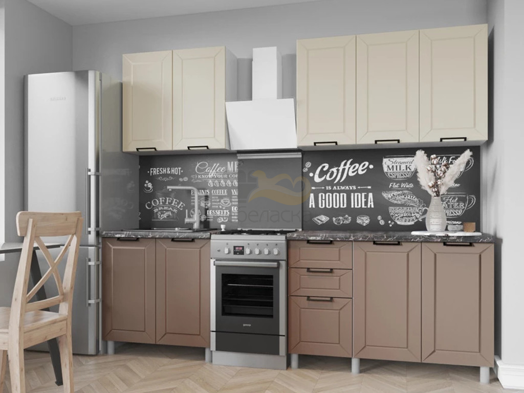 - Кухня Ривьера 2000 без стекла МДФ Карбон Брюле/Карбон Латте без столешницы