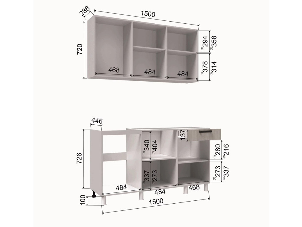 - Кухня Вандт 1500 МДФ Айвори/Лунный Кратер без столешницы