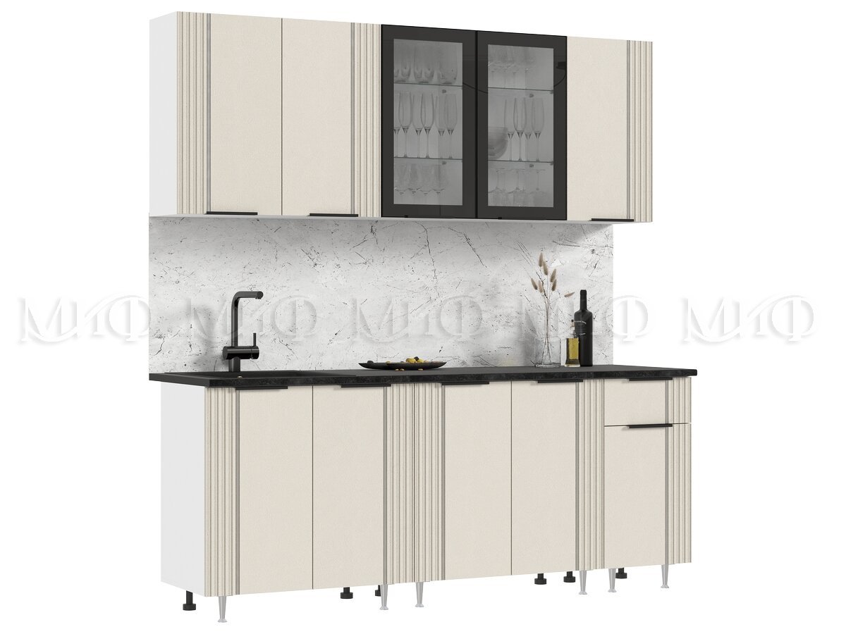 - Кухня Виктория 2000 мм Пластер Аворио/Белый (Кастилло темный)
