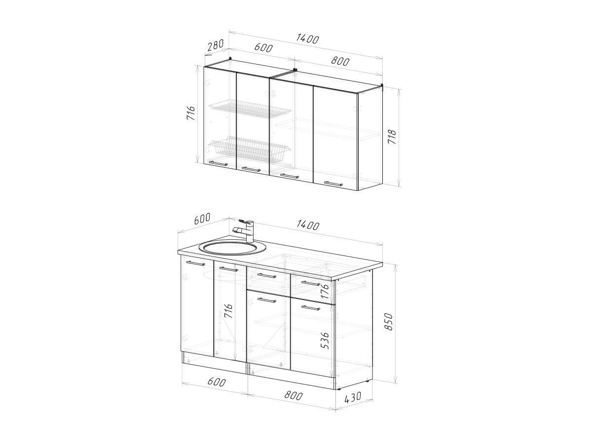- Кухонный гарнитур Анхель медиум 1400 мм