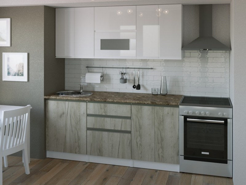 Мойки, смесители и посудосушители в комплекты гарнитуров не входят.