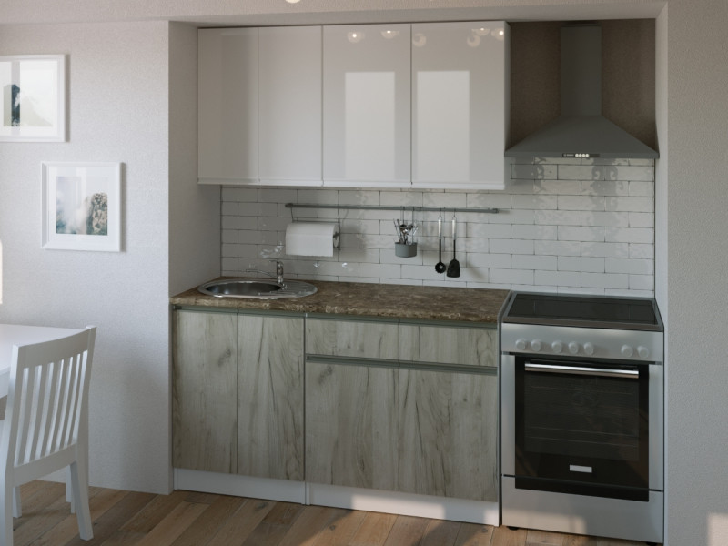 Мойки, смесители и посудосушители в комплекты гарнитуров не входят.