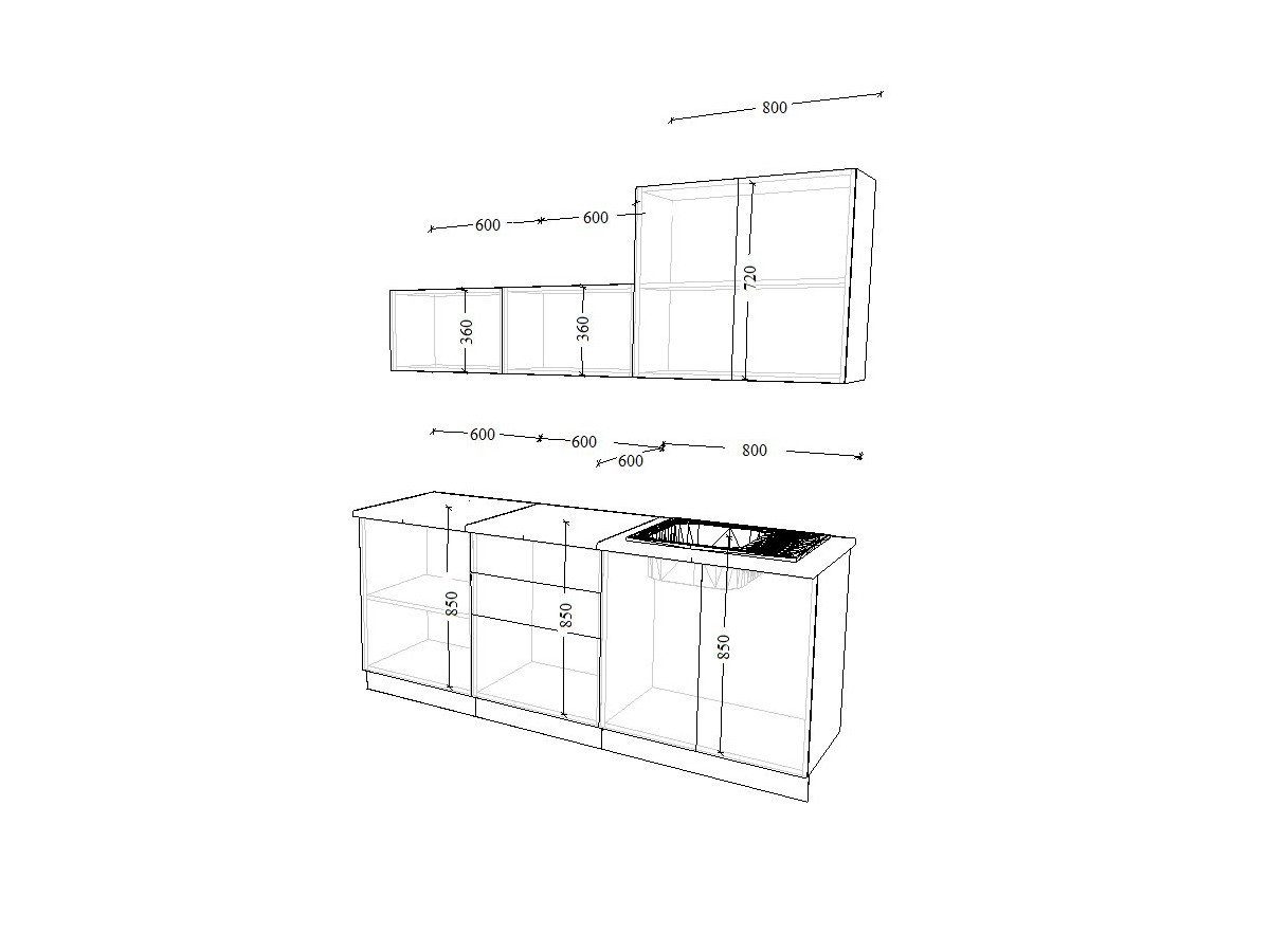 Кухонная мойка, стеновая панель, посудосушитель, планки для столешницы в комплект не входят.