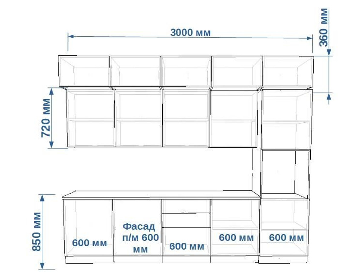 - высота верхних шкафов 720 мм