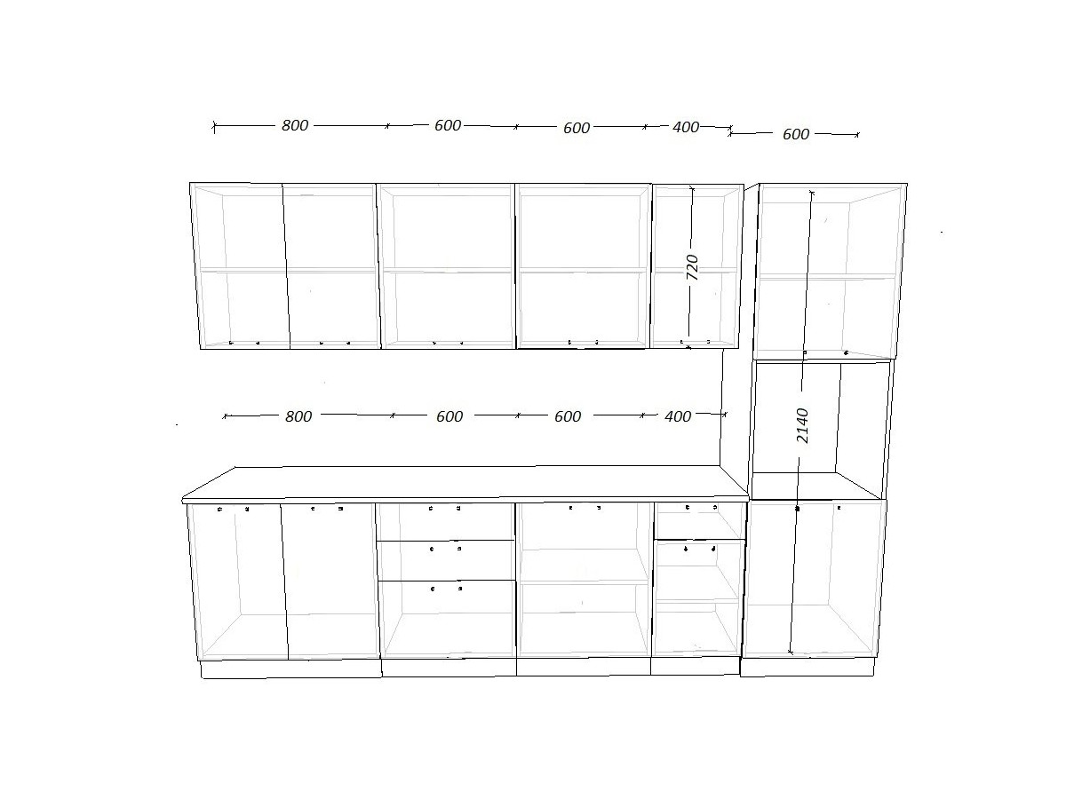 Кухонная мойка, стеновая панель, посудосушитель, планки для столешницы в комплект не входят.