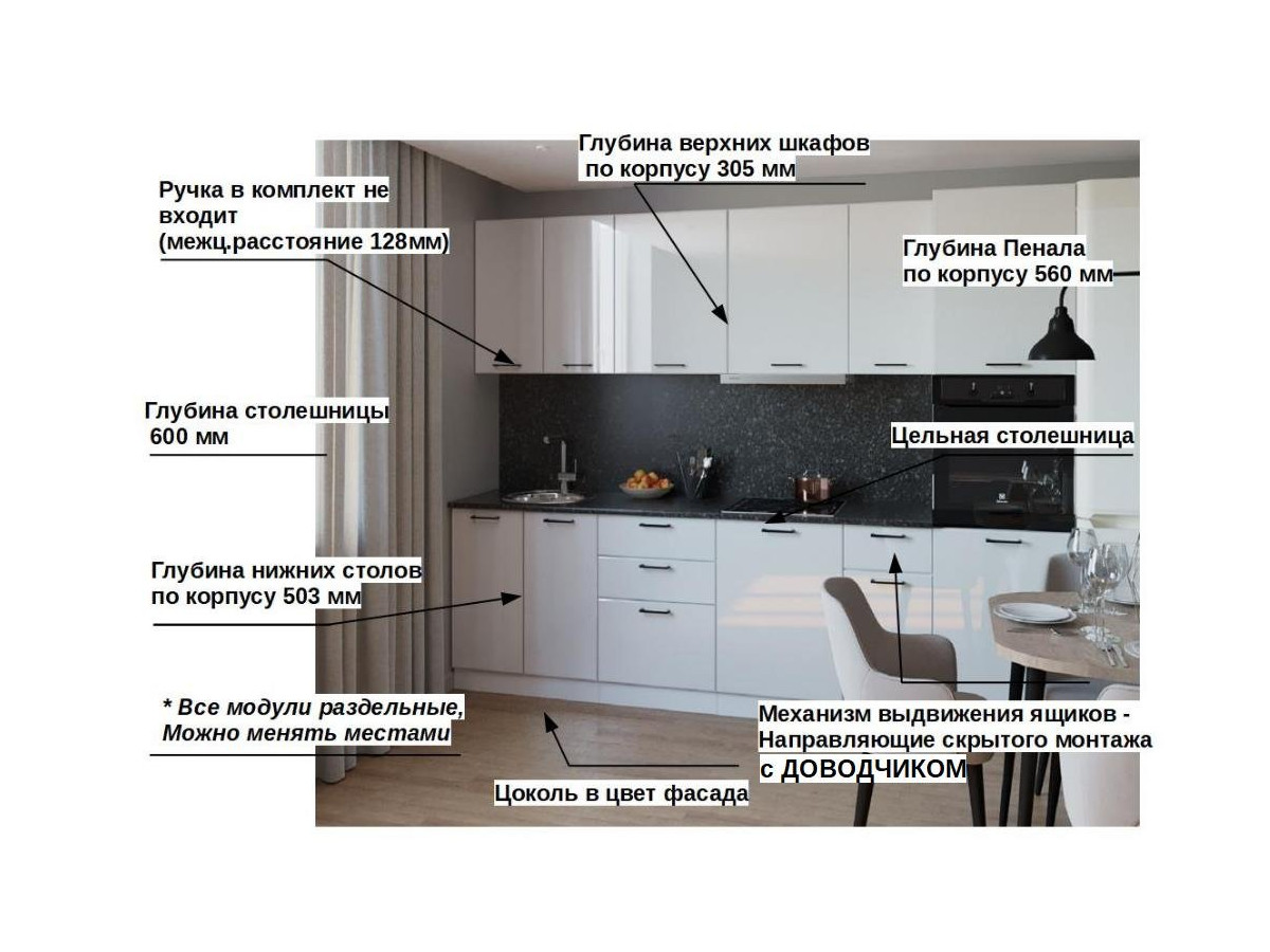 - Кухонный гарнитур арт 3 Белый глянец 3000 мм