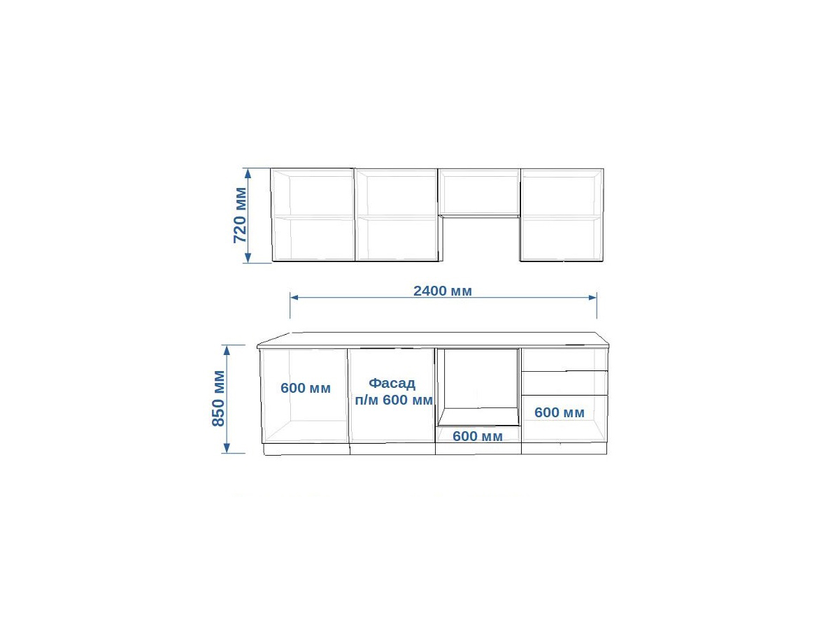 - Кухонный гарнитур арт 38 Лайн Пикрит 2400 мм