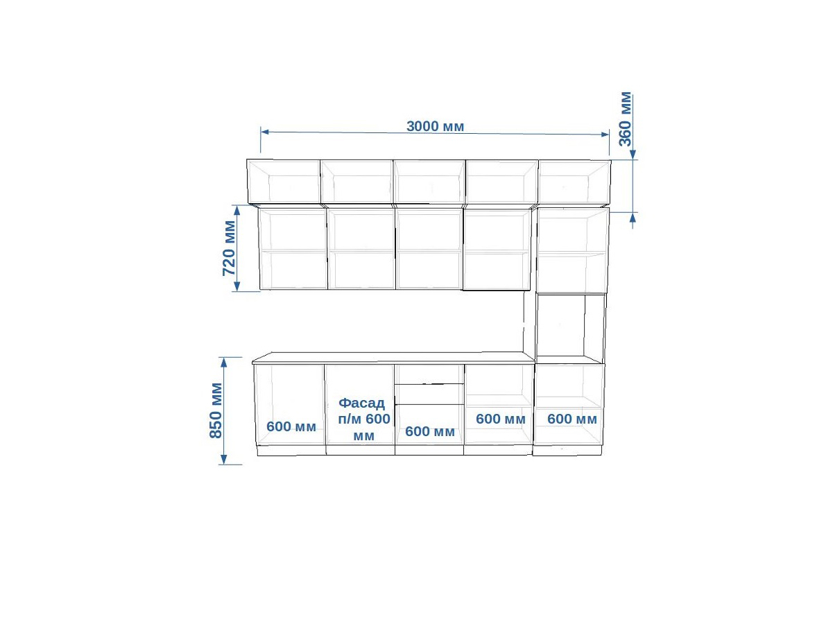 - высота верхних шкафов 720 мм