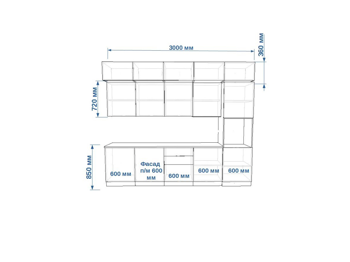 - высота верхних шкафов 720 мм