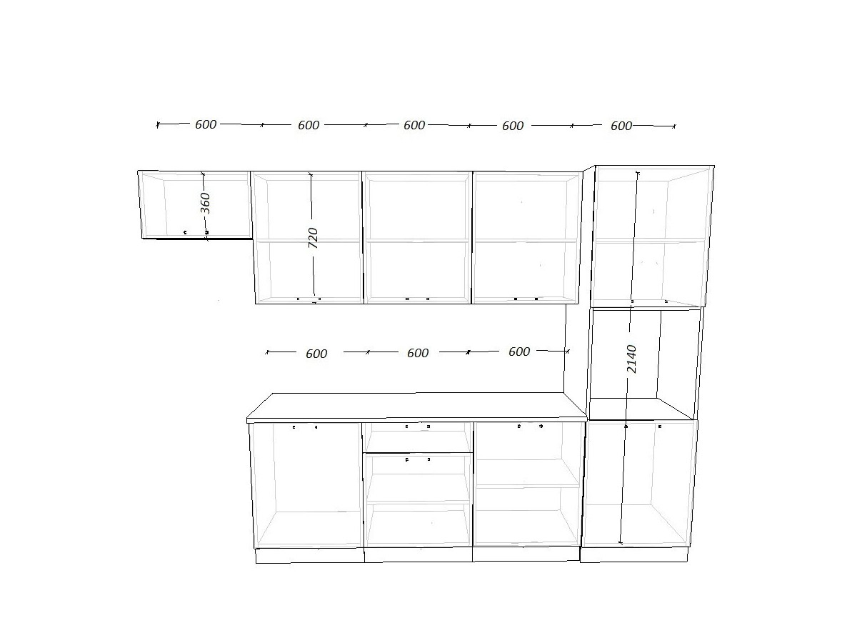 Кухонная мойка, стеновая панель, посудосушитель, планки для столешницы в комплект не входят.