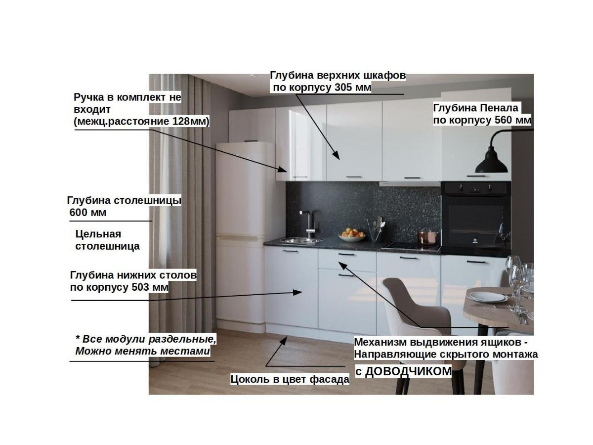 Кухонный гарнитур арт 7 Белый глянец 3000 мм