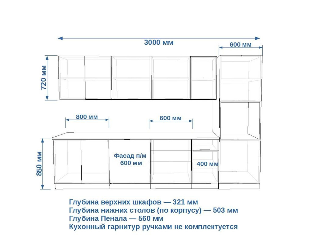 - Кухонный гарнитур арт 8 Океания Кристалл 3000 мм
