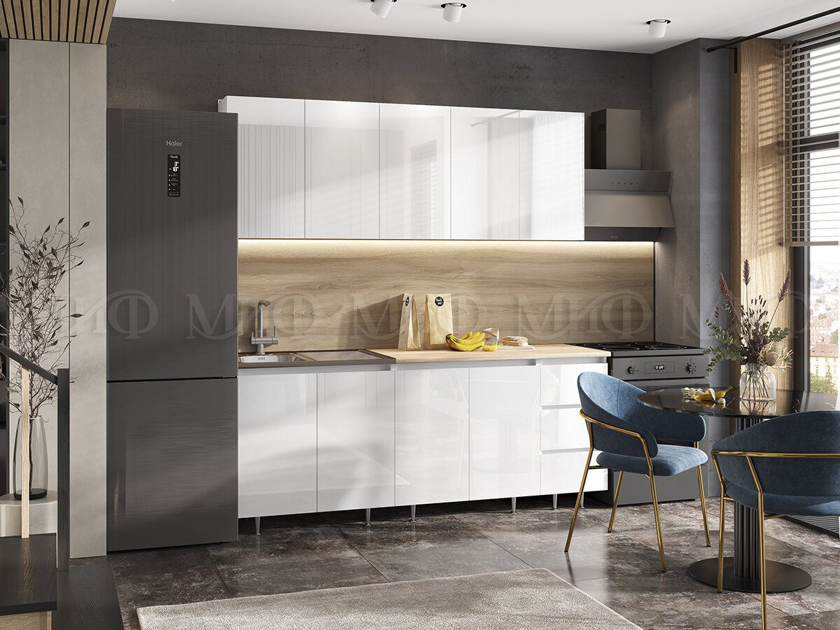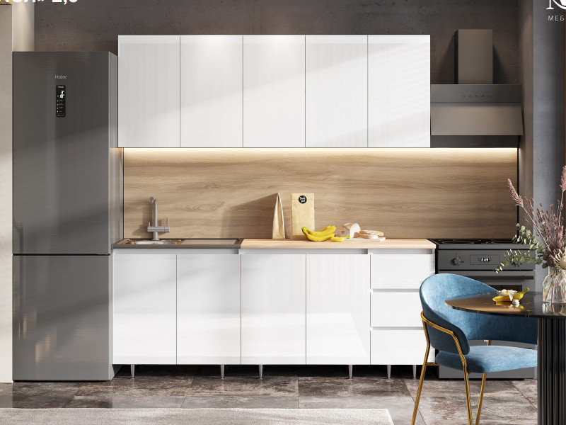- Кухонный гарнитур Челси 2000 мм Белый глянец холодный