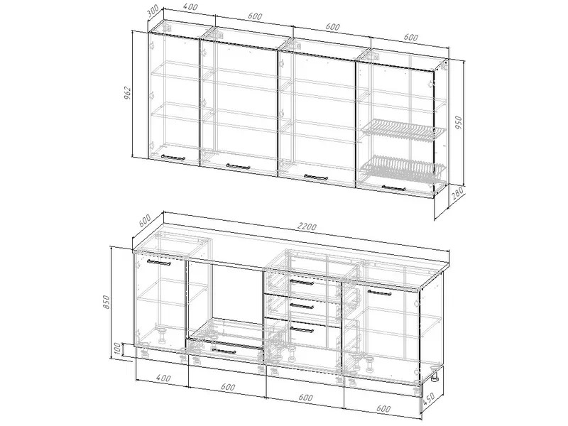 Кухонный гарнитур Шампань 2200 (верх 950 мм)