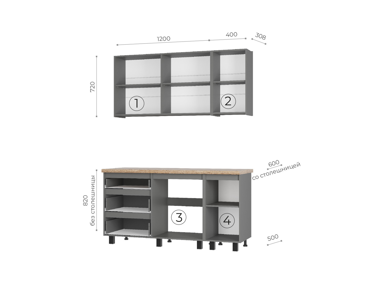3. Кухонный шкаф-стол напольный 12Р2-2