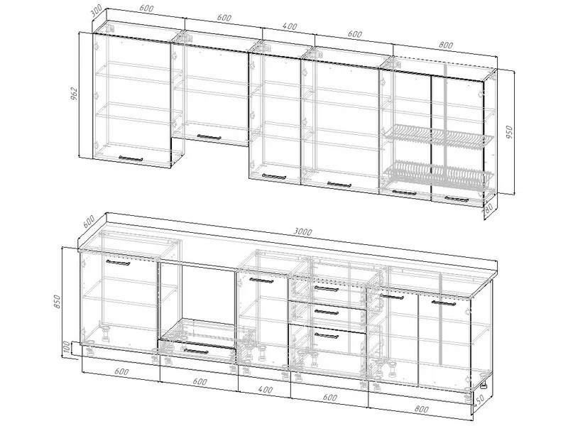 Кухонный гарнитур Шимо 3000 (верх 950 мм) МДФ