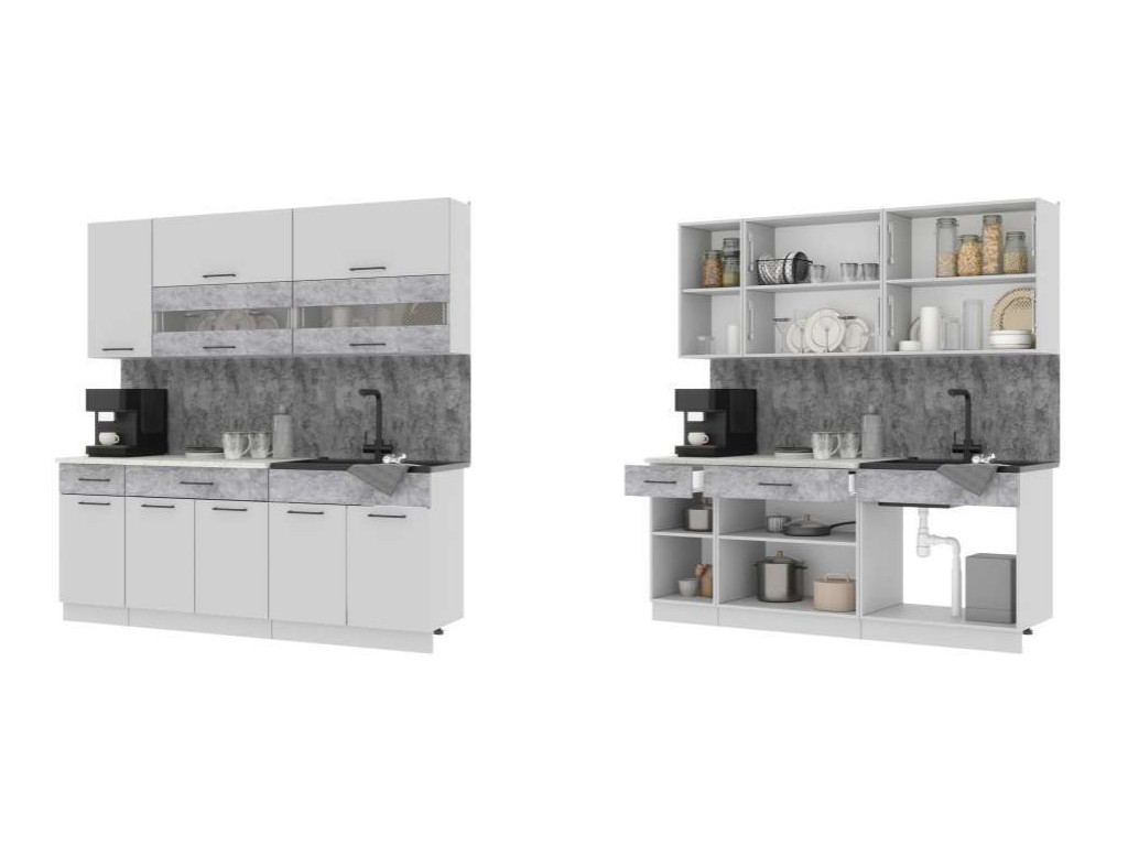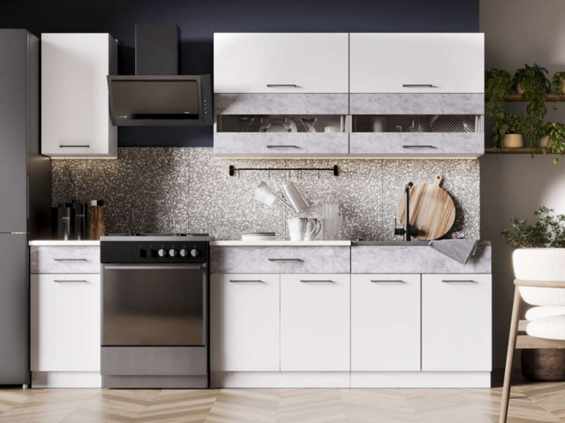 - Кухонный гарнитур Ингрид ЛДСП 2000 мм Белый-Бетон