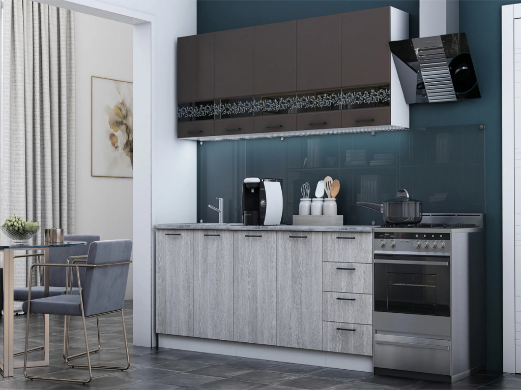 - Кухонный гарнитур Милена МДФ 2000 смоки софт/вяз