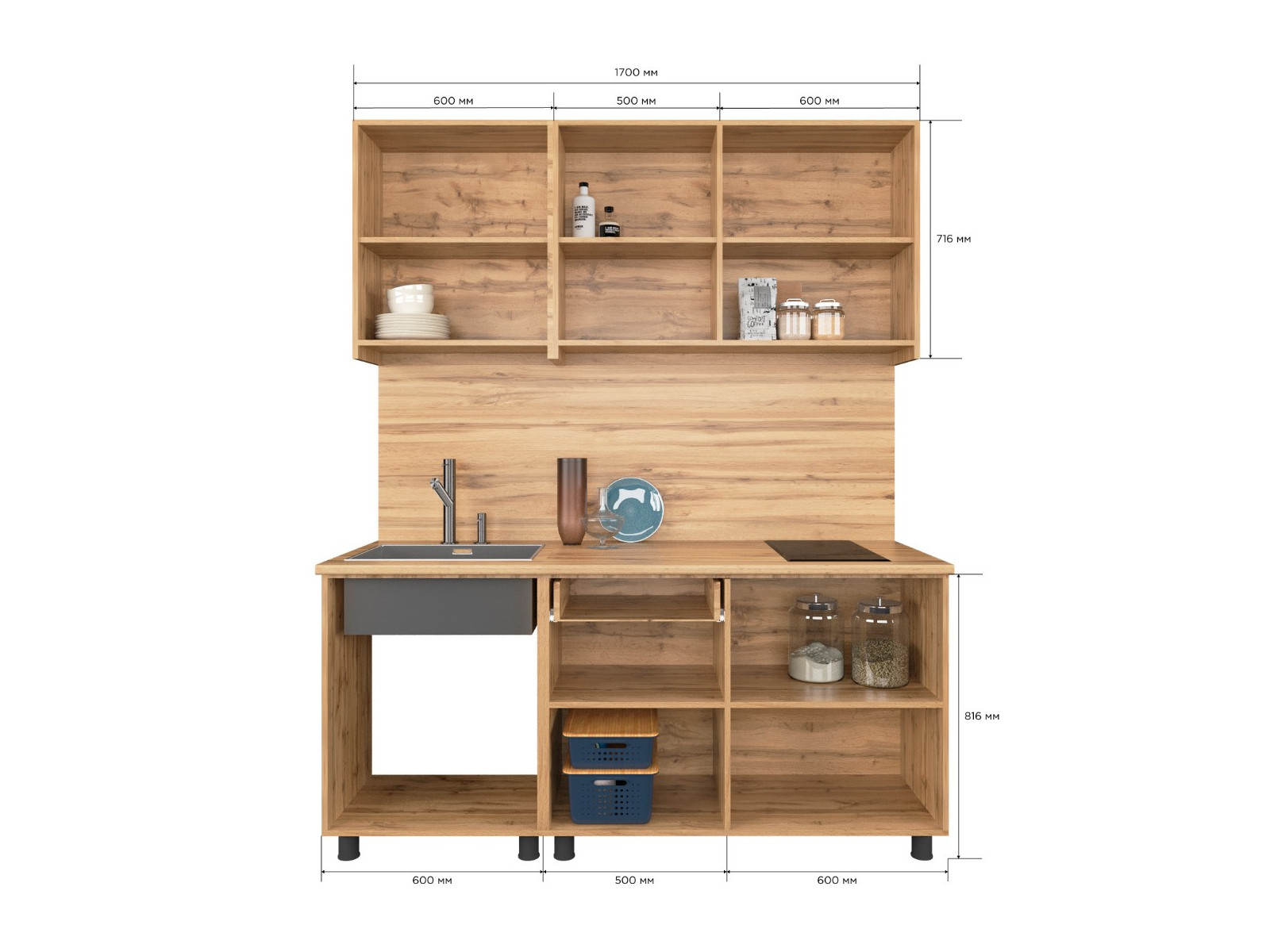 - Кухонный гарнитур Норди 1700 мм ЛДСП Вотан/Белый