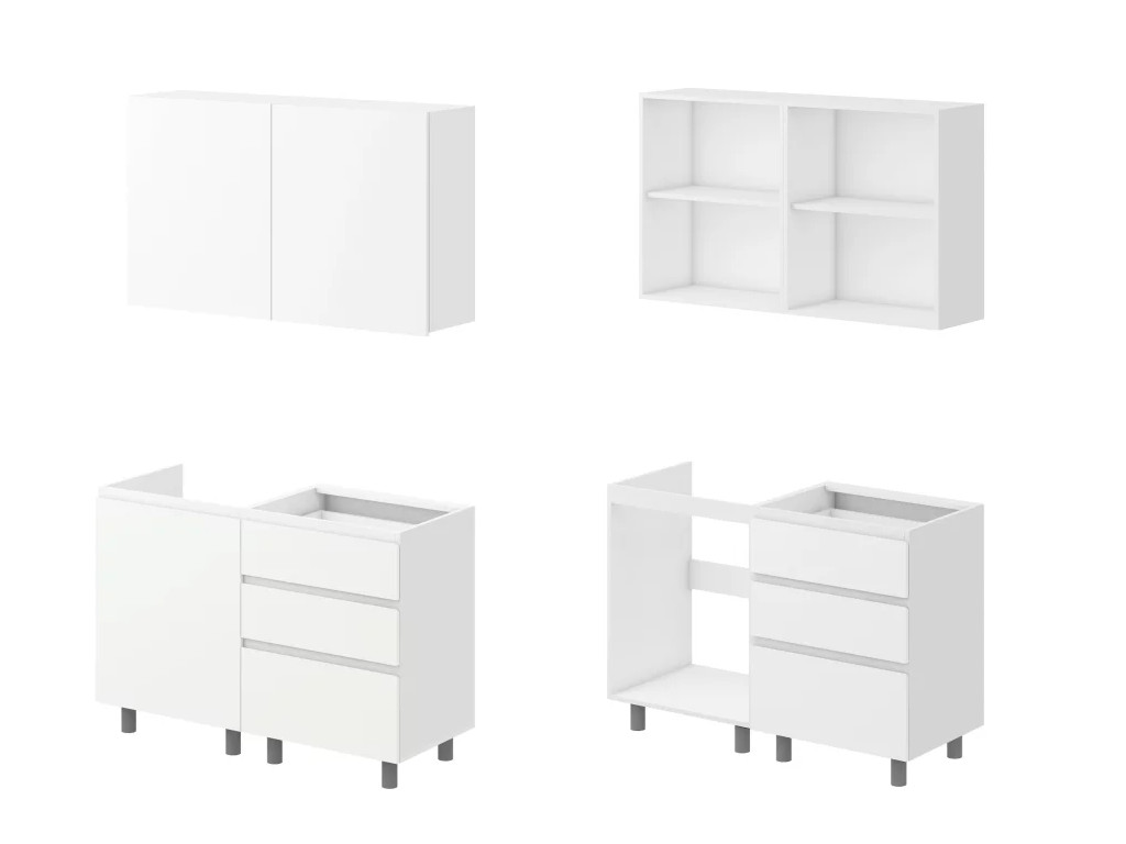 - Нижний модуль под мойку (60х82х47 см): компактный и вместительный, идеально подходит для размещения сантехники и хранения моющих средств.