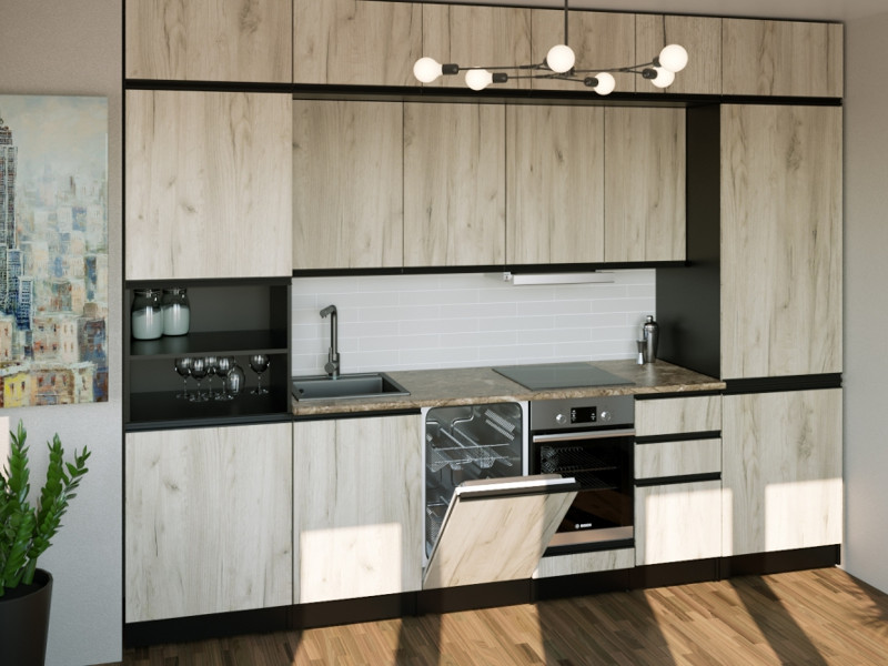 Мойка, смеситель, стеновая панель и посудосушитель в комплект гарнитура не входят.