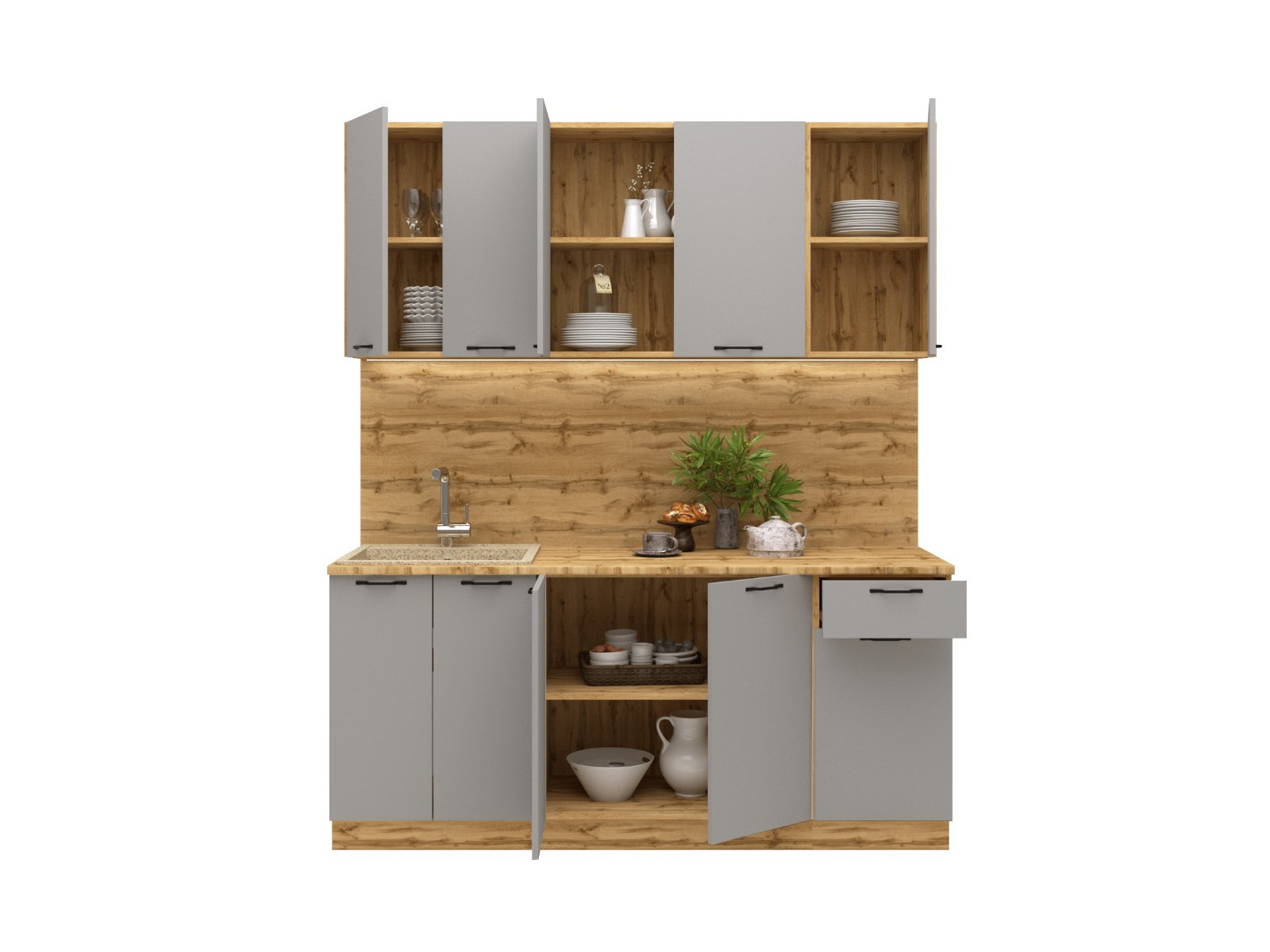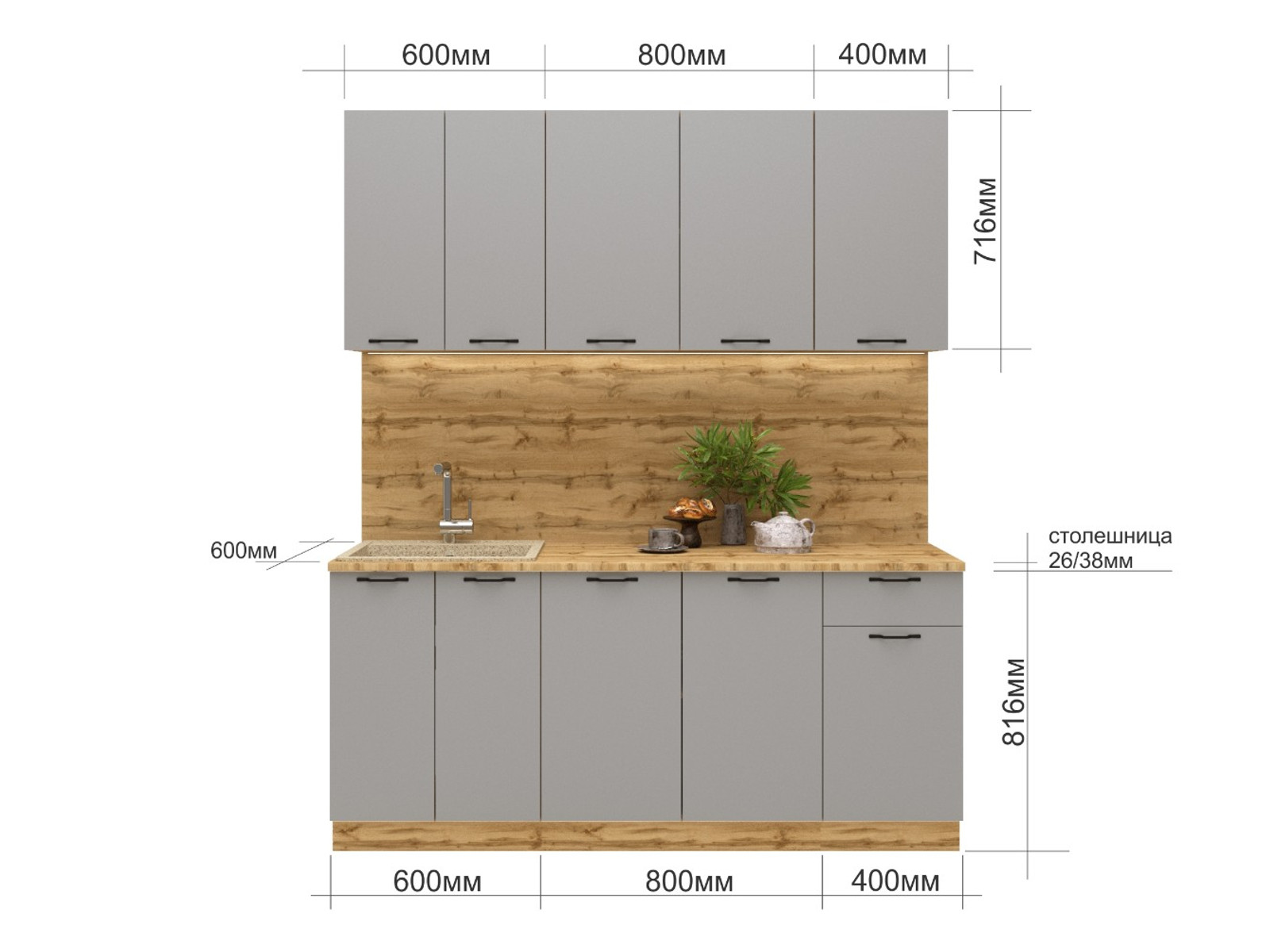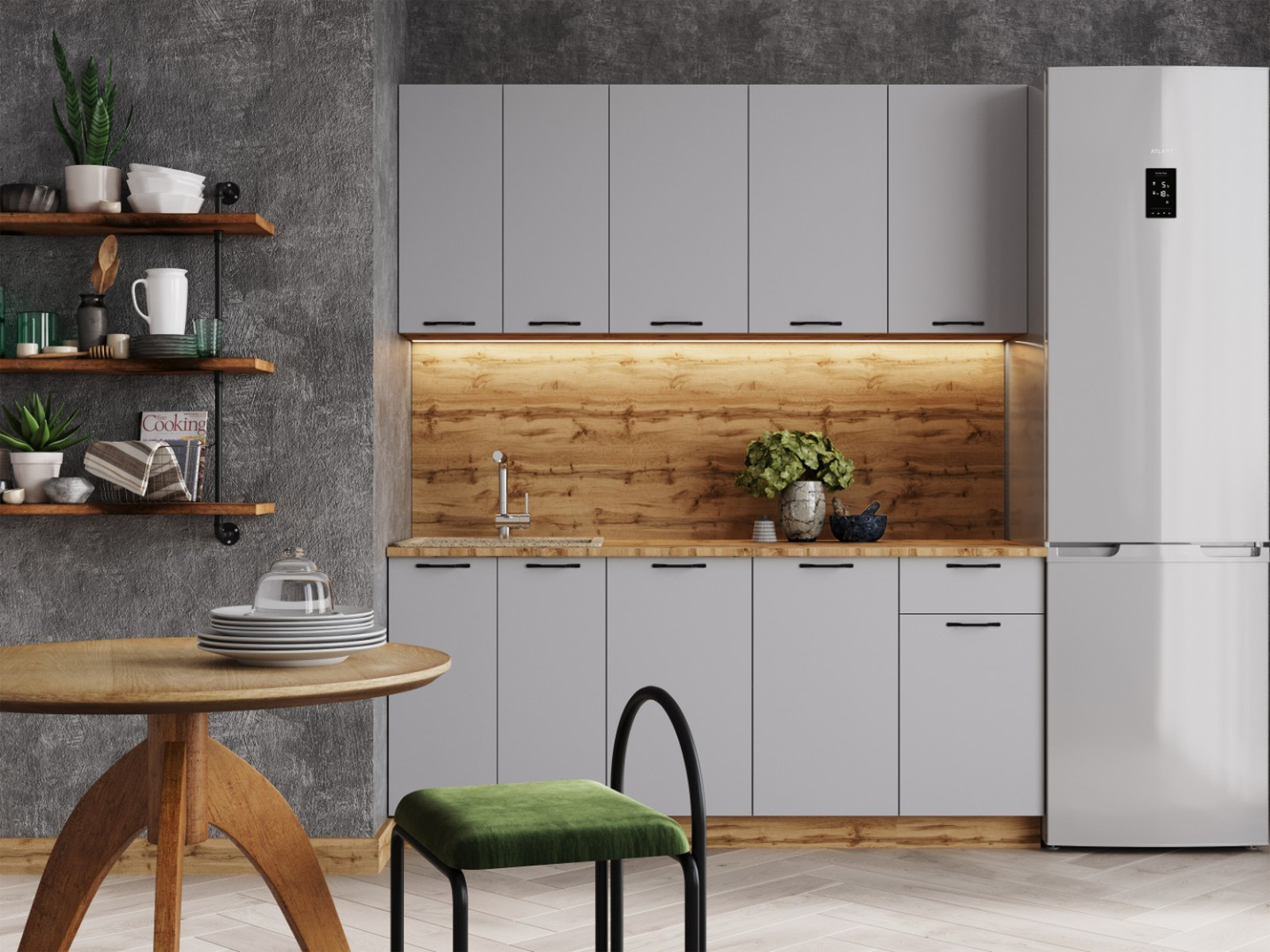- Кухонный гарнитур Валерия 1800 мм МДФ Вотан/Серый