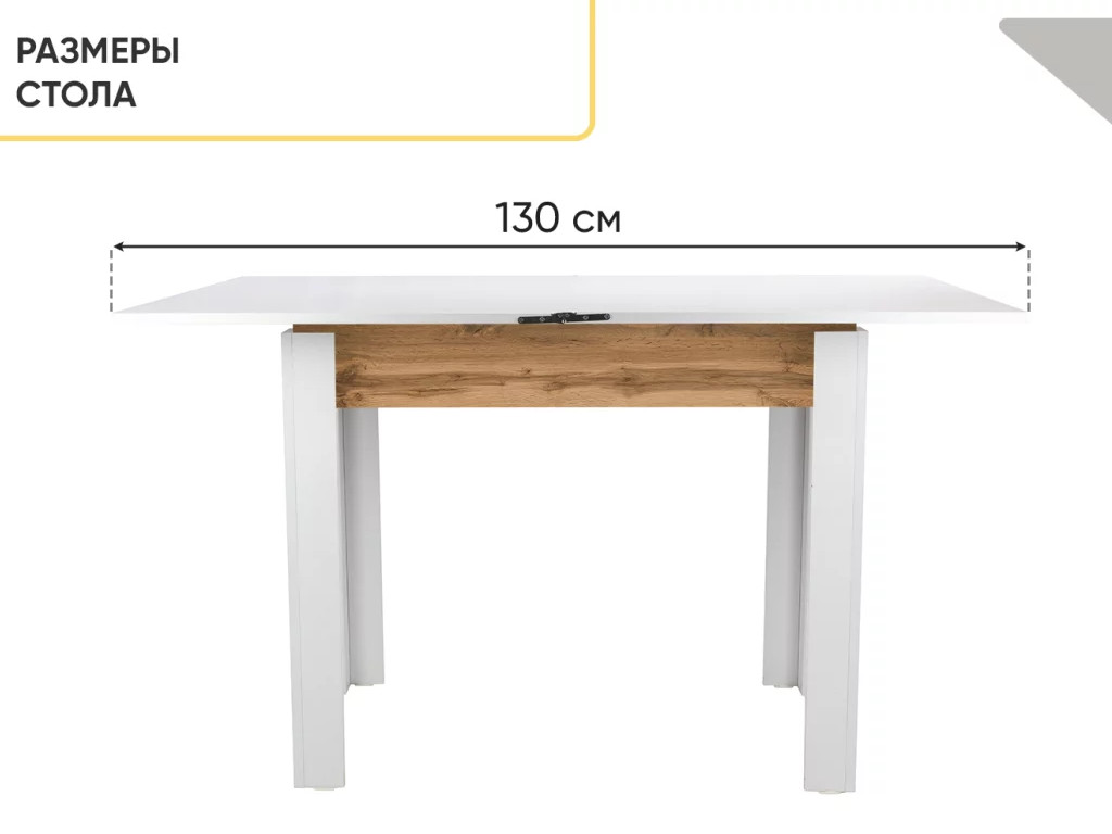 - Стол обеденный Doma раскладной Белый бриллиант/Дуб вотан