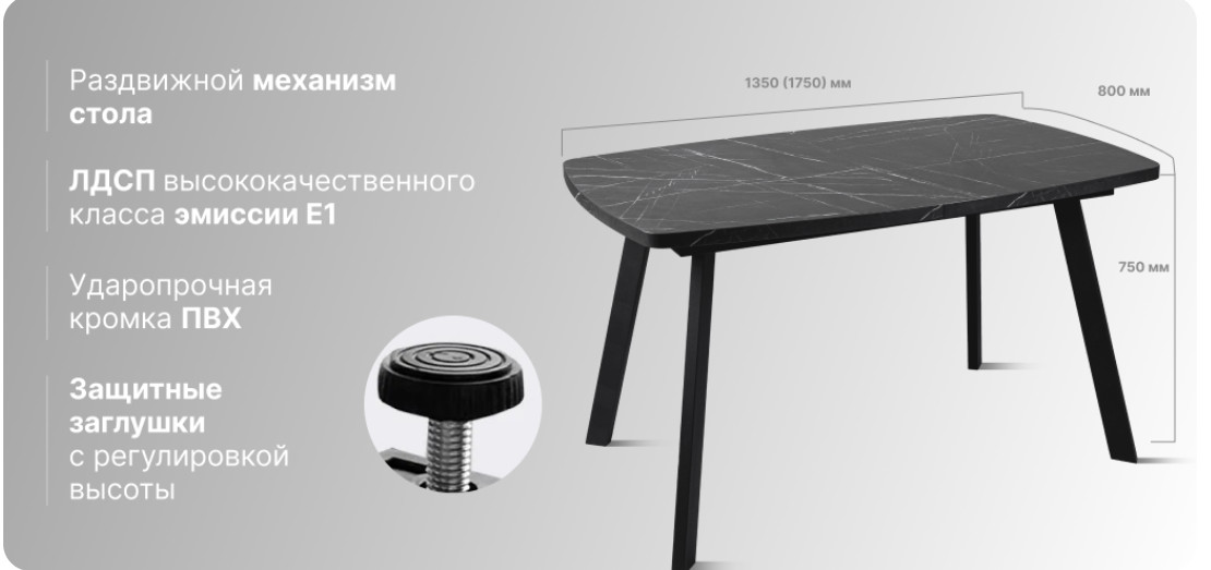 - Стол раздвижной Прованс.1 пластик мрамор черный - комплект ног №12.1