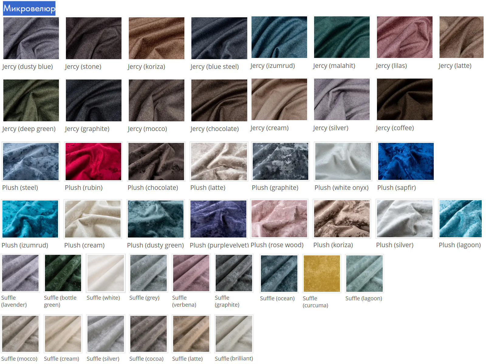- Кольт, Luma, Paris, Merlin, Desert, Plush, Jercy, Dubai