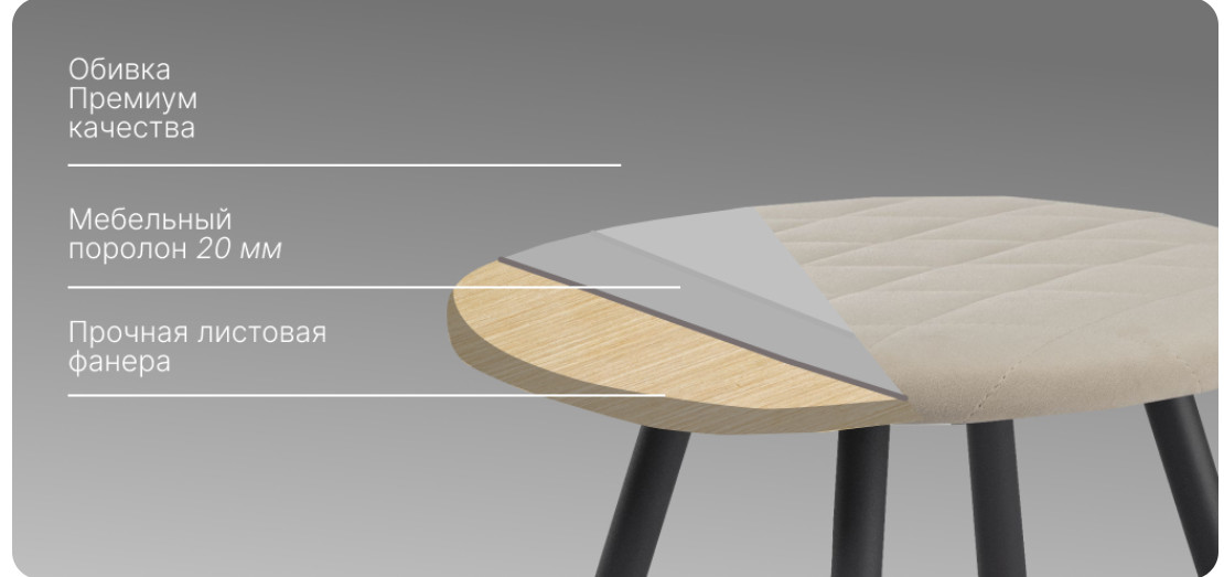 - Табурет Йорк.2 Велюр dream stone серый
