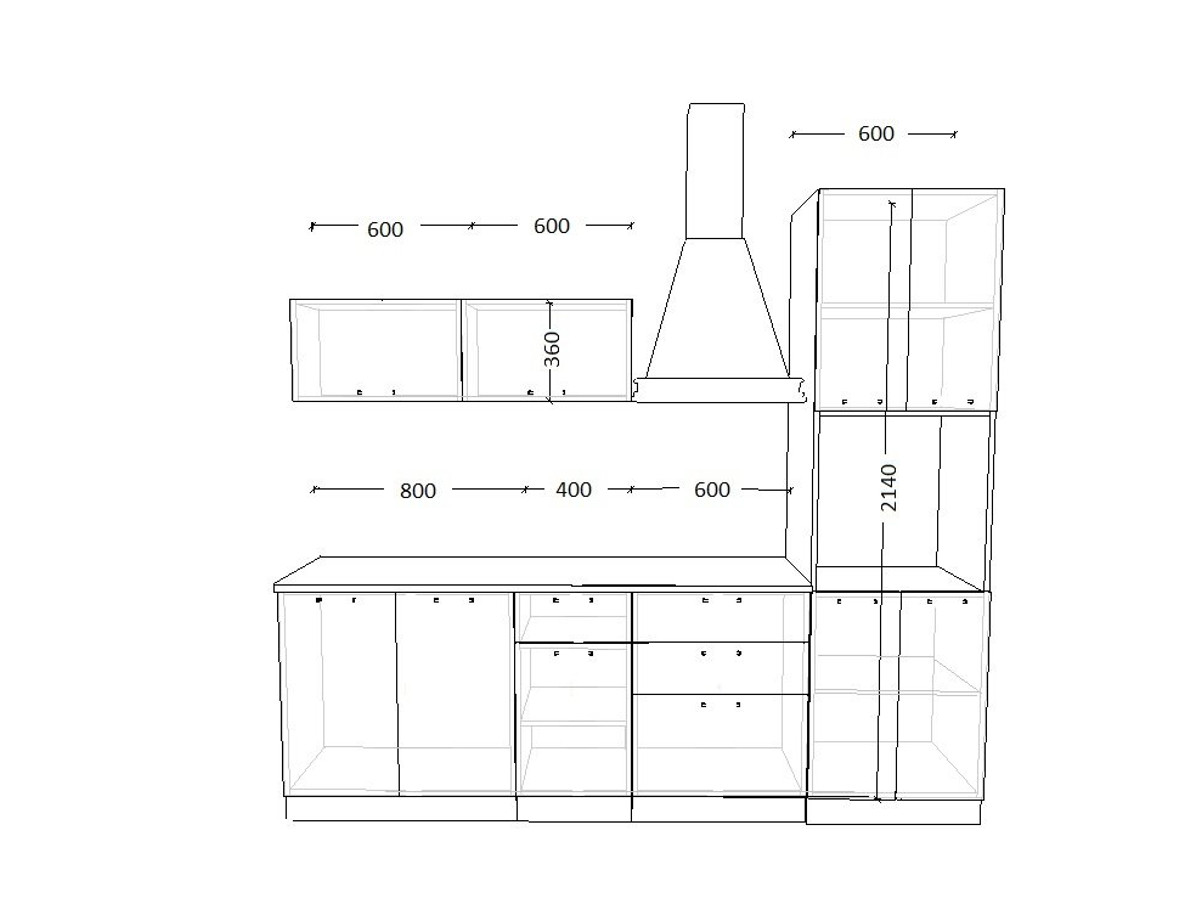 Кухонная мойка, стеновая панель, посудосушитель, планки для столешницы в комплект не входят.