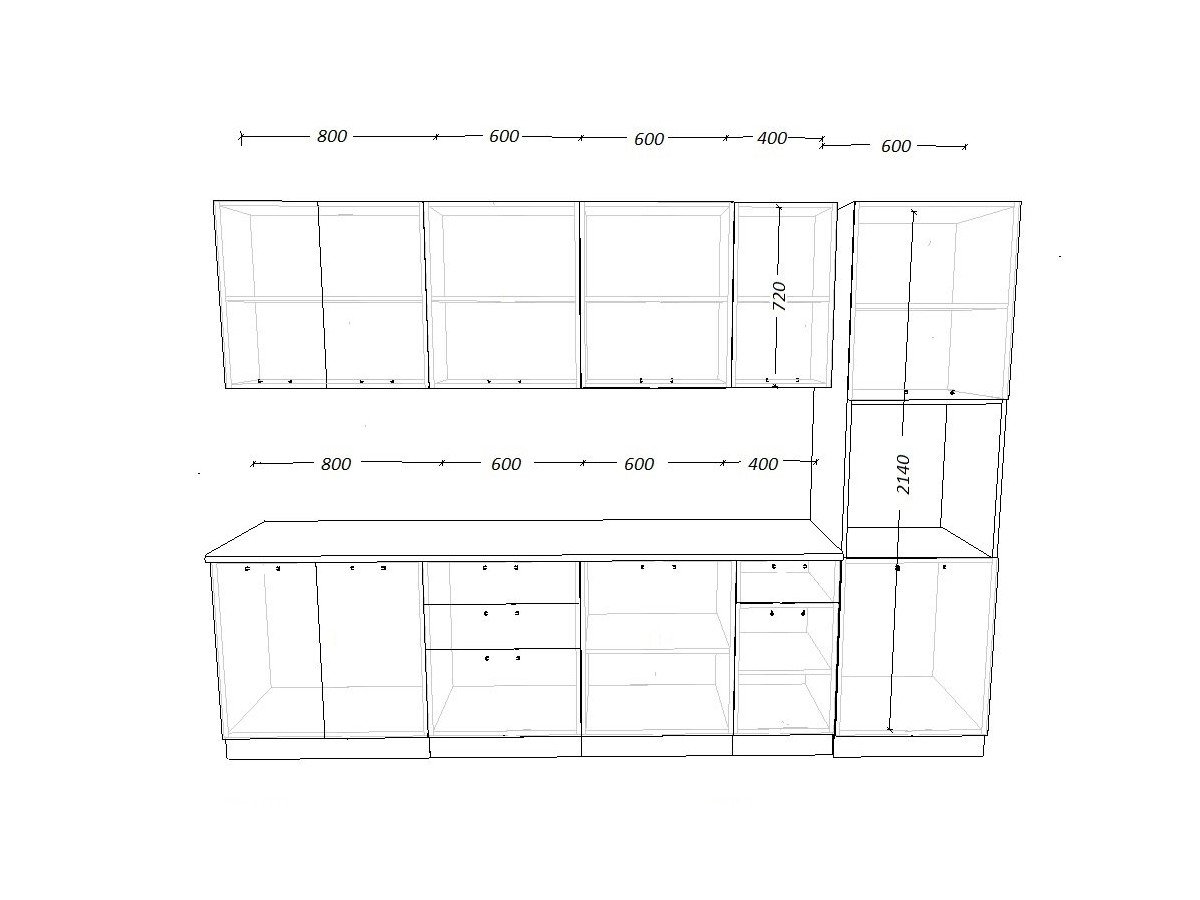 Кухонная мойка, стеновая панель, посудосушитель, планки для столешницы в комплект не входят.