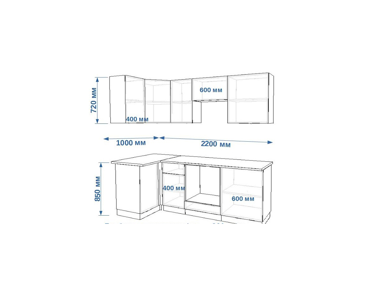 - Кухонный гарнитур арт 2 Фаска Тальк 1000х2200 мм