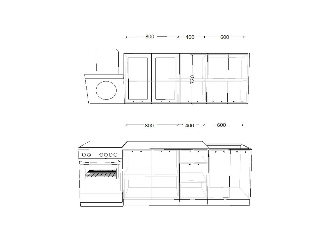Кухонная мойка, стеновая панель, посудосушитель, планки для столешницы в комплект не входят.