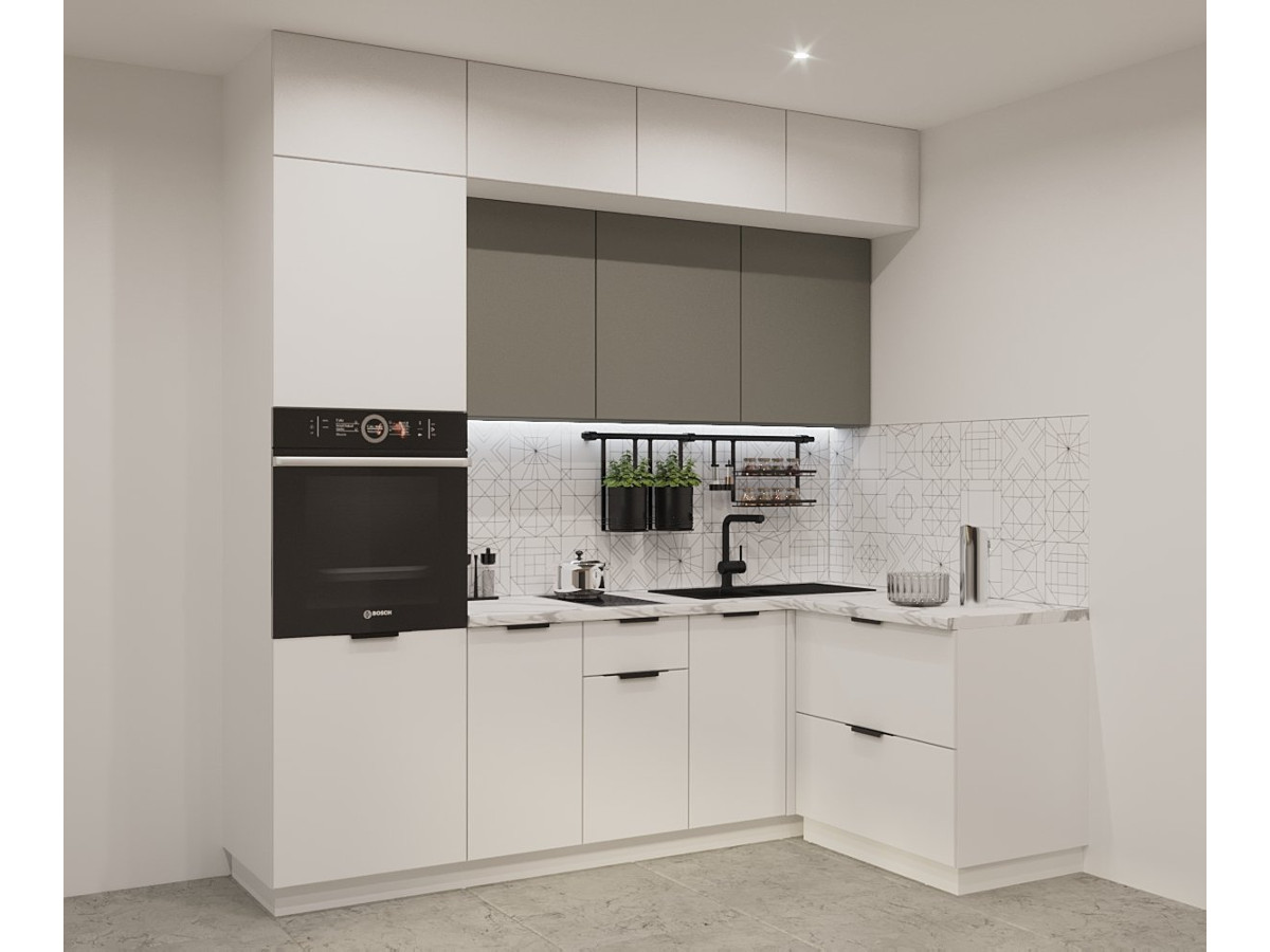 - Кухонный гарнитур арт 9 Фаска Обсидиан Тальк 2400х1400 мм