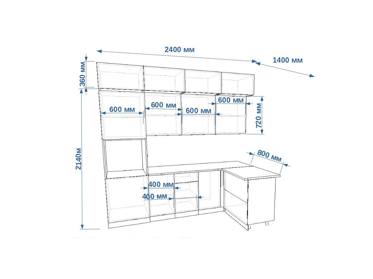 Кухонная мойка, стеновая панель, посудосушитель, планки для столешницы в комплект не входят.