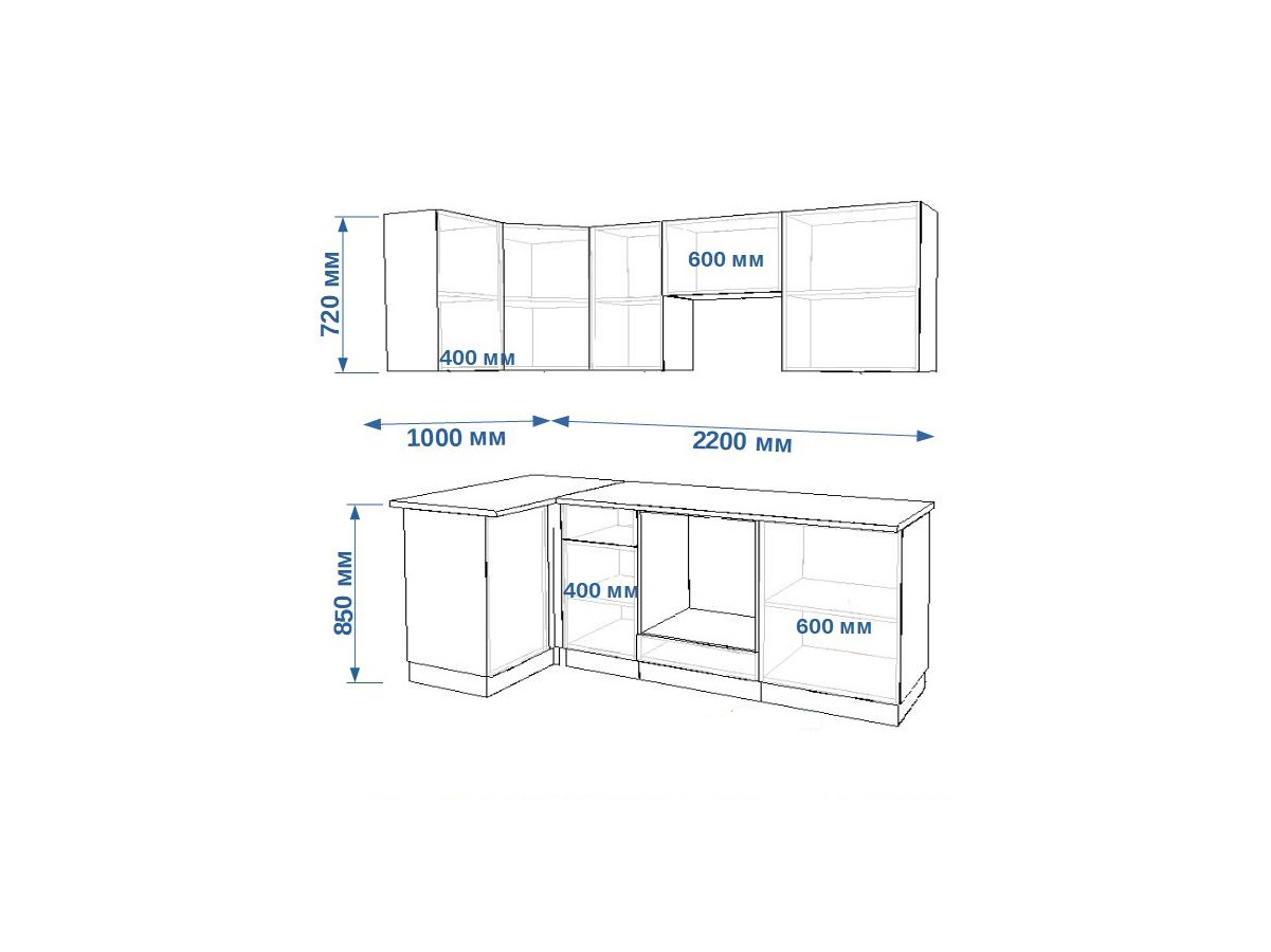 - высота верхних шкафов 720 мм