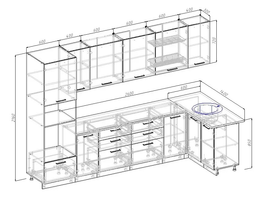 - Столешница: ЛДСП 26мм со скругленным краем (в пластике)
