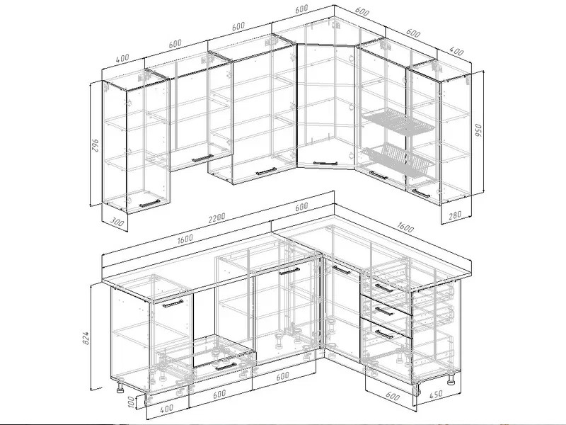 Кухонный гарнитур Трансильвания 2200х1600 (верх 950 мм)