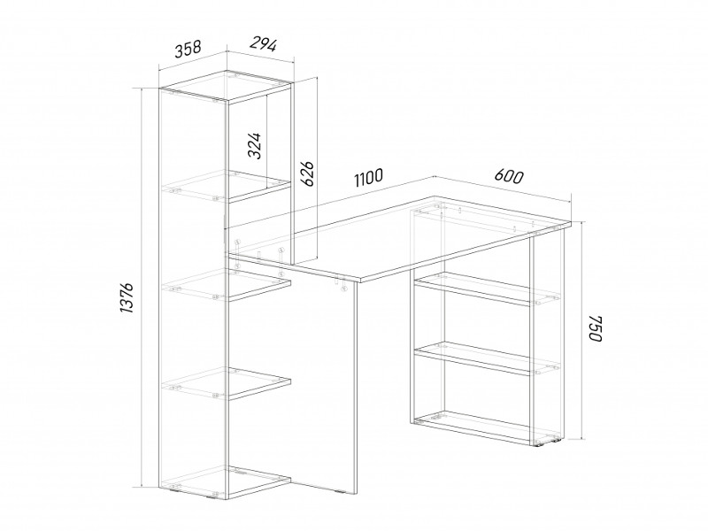 - Глубина, мм 600