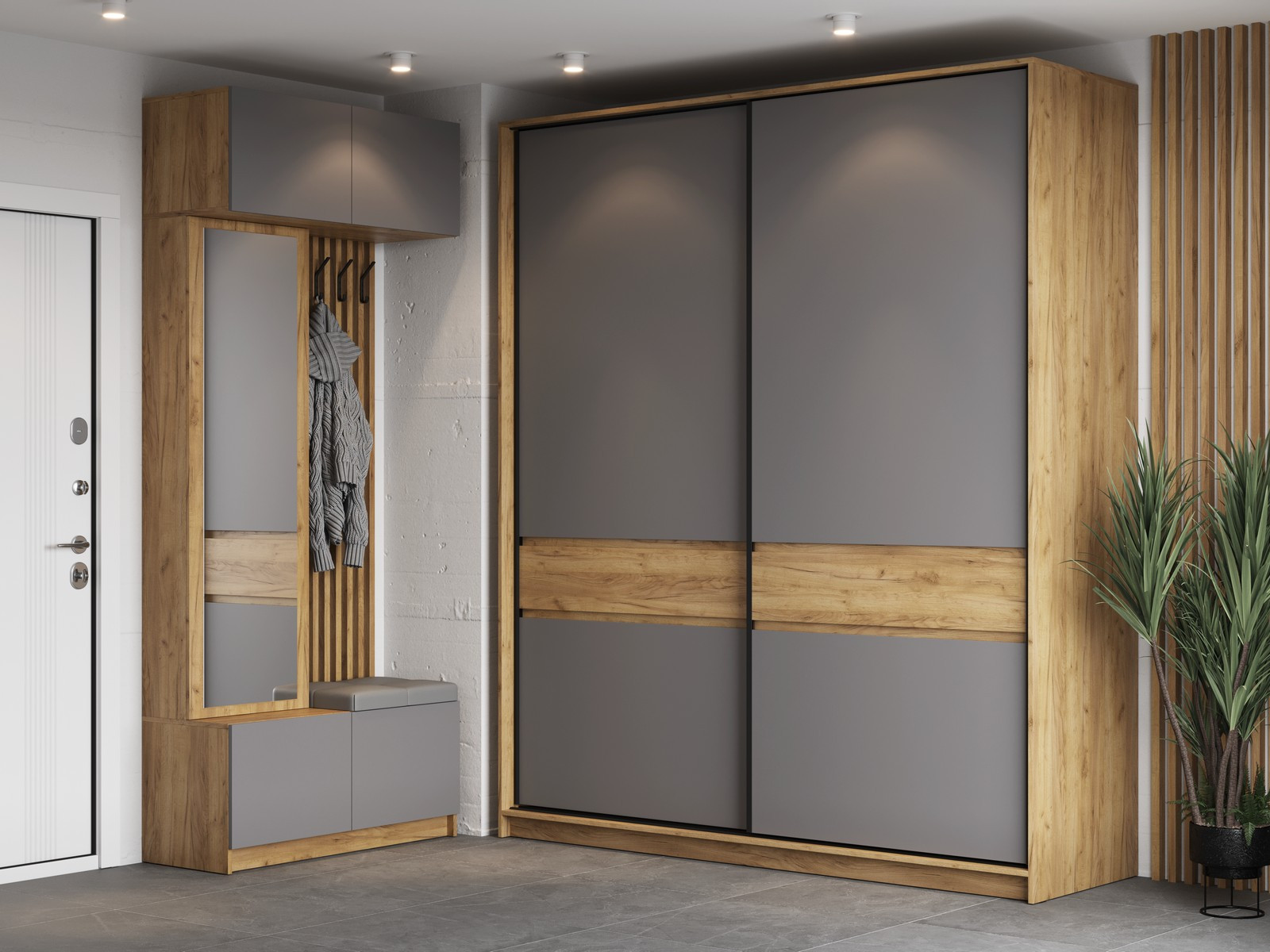 - Модульная прихожая Бостон ЛДСП серый шифер со шкафом купе
