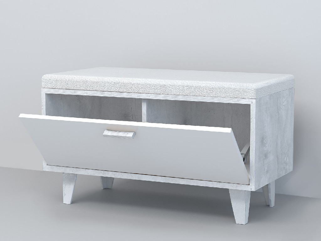 - Обувница Эго Об-1 бетон светлый/белый глянец на ножках