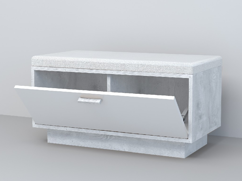 - Обувница Эго Об-1 бетон светлый/белый глянец на цоколе
