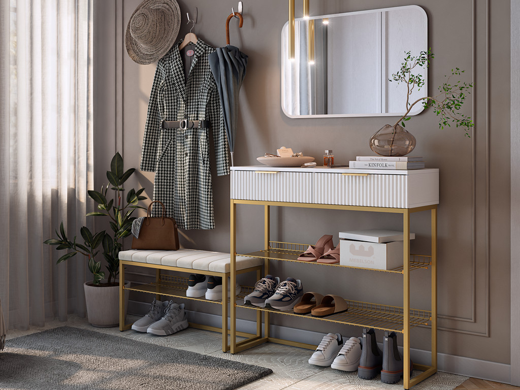 - Обувница Классная 1 белый матовый/золото