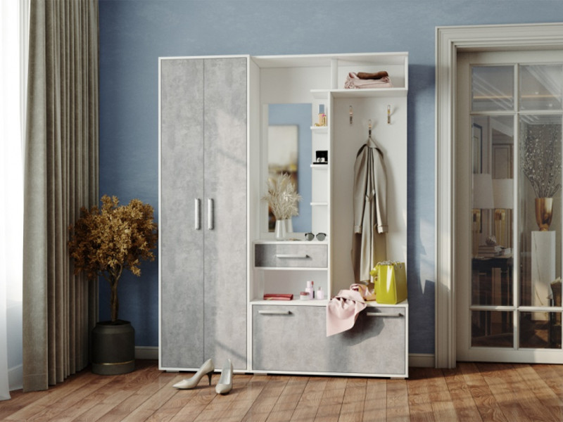 - Прихожая Канзас белый/цемент светлый