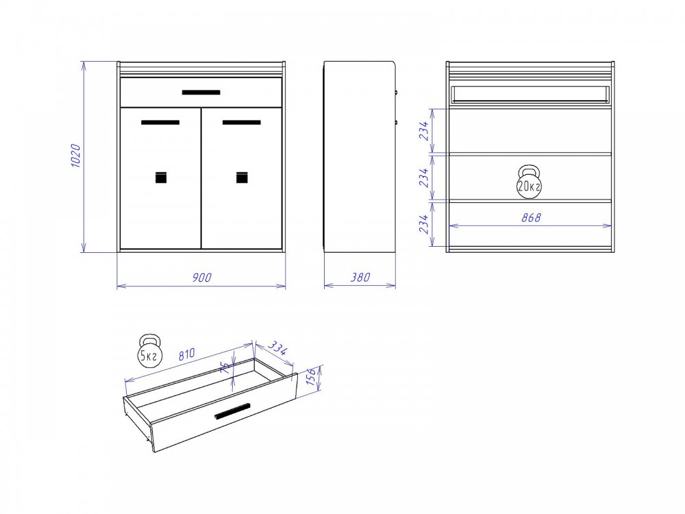 Размер Ш*Г*В: 900*384*1020 мм